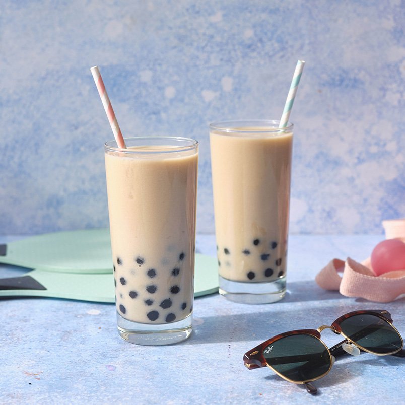 • Scola le perle di tapioca cotte e distribuiscile in due bicchieri alti. Aspetta che si raffreddino, quindi versaci sopra il composto. Usa una cannuccia larga per bere questa deliziosa bevanda
